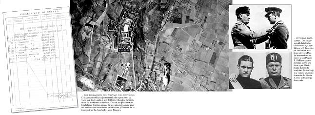 unidad aérea. Y se puso manos a la obra rápidamente. Alicante fue, el 30 de septiembre, el objetivo elegido para su bautismo de fuego en tierras españolas. A los mandos de un trimotor Savoia-Marchetti SM79, el bombardero más veloz de la época bautizado por los fascistas como sparviero (gavilán), lanzó cuatro bombas sobre la ciudad levantina a las once de la noche. Un día después, el 1 de octubre, el vástago de Mussolini participó en un sangriento ataque aéreo sobre Barcelona que se cobró la vida de cincuenta y cinco civiles. Pero la carga máxima de bombas que podía transportar el sparviero, 1.250 kilos, se la reservó Bruno Mussolini para el bombardeo que llevó a cabo sobre Valencia, por aquel entonces capital de la República, a las diez de la mañana del domingo 3 de octubre de 1937. Los ataques de la escuadrilla italiana causaron medio centenar de víctimas mortales, así como heridas de diferente consideración a otras ochenta. La última incursión aérea que llevó a cabo el hijo de Mussolini se produjo en Peñíscola, el 20 de octubre. En su libreta de vuelo quedaban apuntadas 8 misiones, 25 horas de operaciones y alrededor de 8.000 kilos de bombas lanzados sobre varias ciudades del litoral mediterráneo peninsular, desde Roses hasta Cartagena. Massot i Muntaner afirma que Hillgarth, en otra carta remitida al Foreign Office, apuntó a mano al margen que Bruno Mussolini abandonó la isla el 12 de noviembre de 1937. Un regreso precipitado quizá porque se había convertido en un objetivo principal para los aviadores republicanos. El hecho es que su destino le esperaba el 7 de agosto de 1941 cuando su avión, un nuevo bombardero Piaggio P.108B de 4 motores, sufrió una brusca pérdida de fuerza y se estrelló contra la pista de aterrizaje en Pisa. |