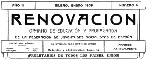 Renovación, es la revista histórica de las Juventudes Socialistas de España (JSE).Fue fundada en febrero de 1907 por la Federación de Juventudes Socialistas de Bilbao, siendo su primer director Francisco Domenech. Era un pequeño boletín de escasa difusión, centrado en el norte de España. En el Congreso de Bilbao en 1908 se transforma en un periódico mensual, y se convierte en el órgano oficial de la Federación Nacional de Juventudes Socialistas de España. Más tarde, se empezará a editar en Madrid. En 1910 accede a su dirección Andrés Saborit, que consigue aumentar tanto su presentación como su tirada, hasta llegar a cerca de los nueve mil ejemplares. Sin embargo, se acusan períodos de irregular publicación entre 1910 y 1912 y problemas con la censura gubernamental.